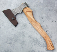 Топор из кованой стали 9ХС с художественным оформлением, рукоять - ясень, кожаный чехол идет в комплекте