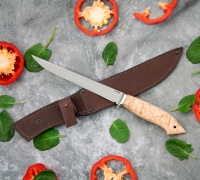 Филейный нож из нержавеющей стали N690, рукоять - стабилизированная карельская береза, кожаный чехол в комплекте.