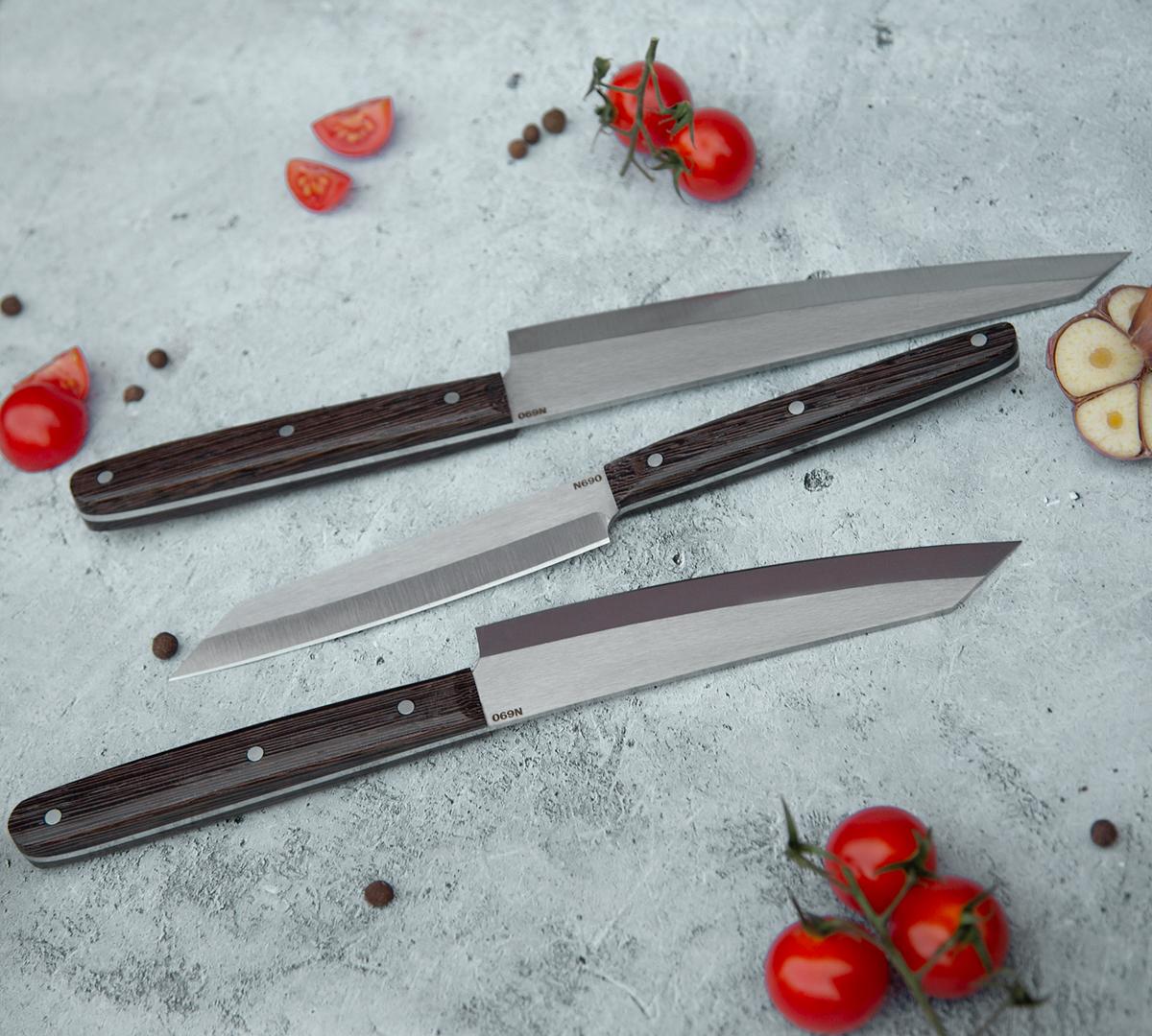 Набор кухонных ножей из стали N690, рукоять - венге