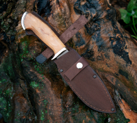 Нож Боцман из булатной стали, рукоять - стабилизированная карельская береза, кожаный чехол идет в комплекте.