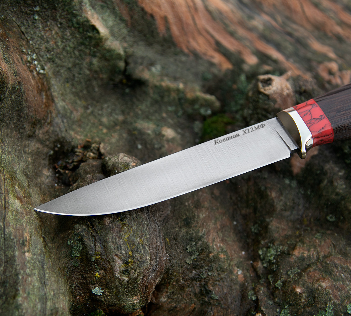 Нож Ладья из кованной стали Х12МФ, рукоять - венге + искуственный камень, кожаный чехол идет в комплекте.